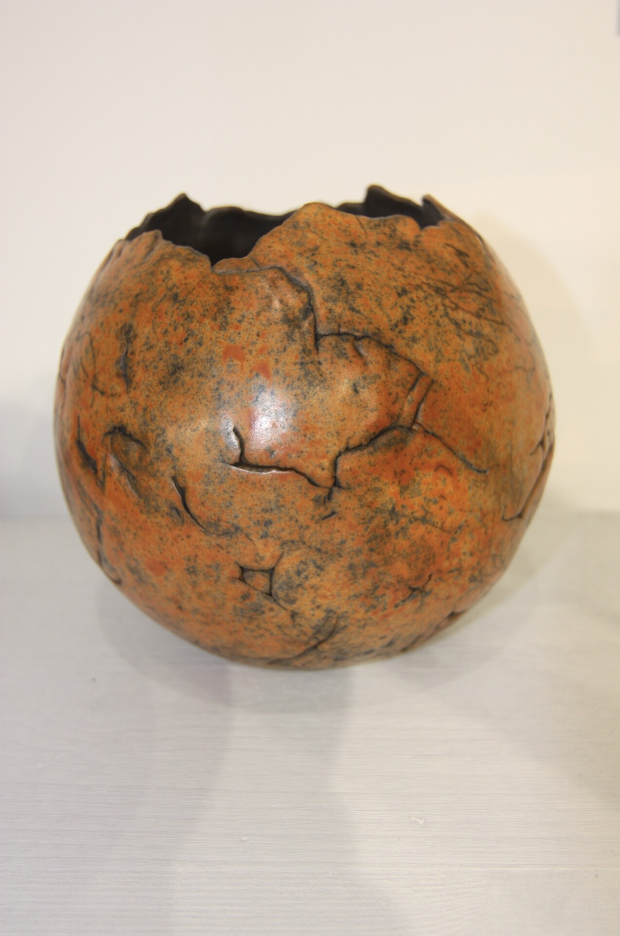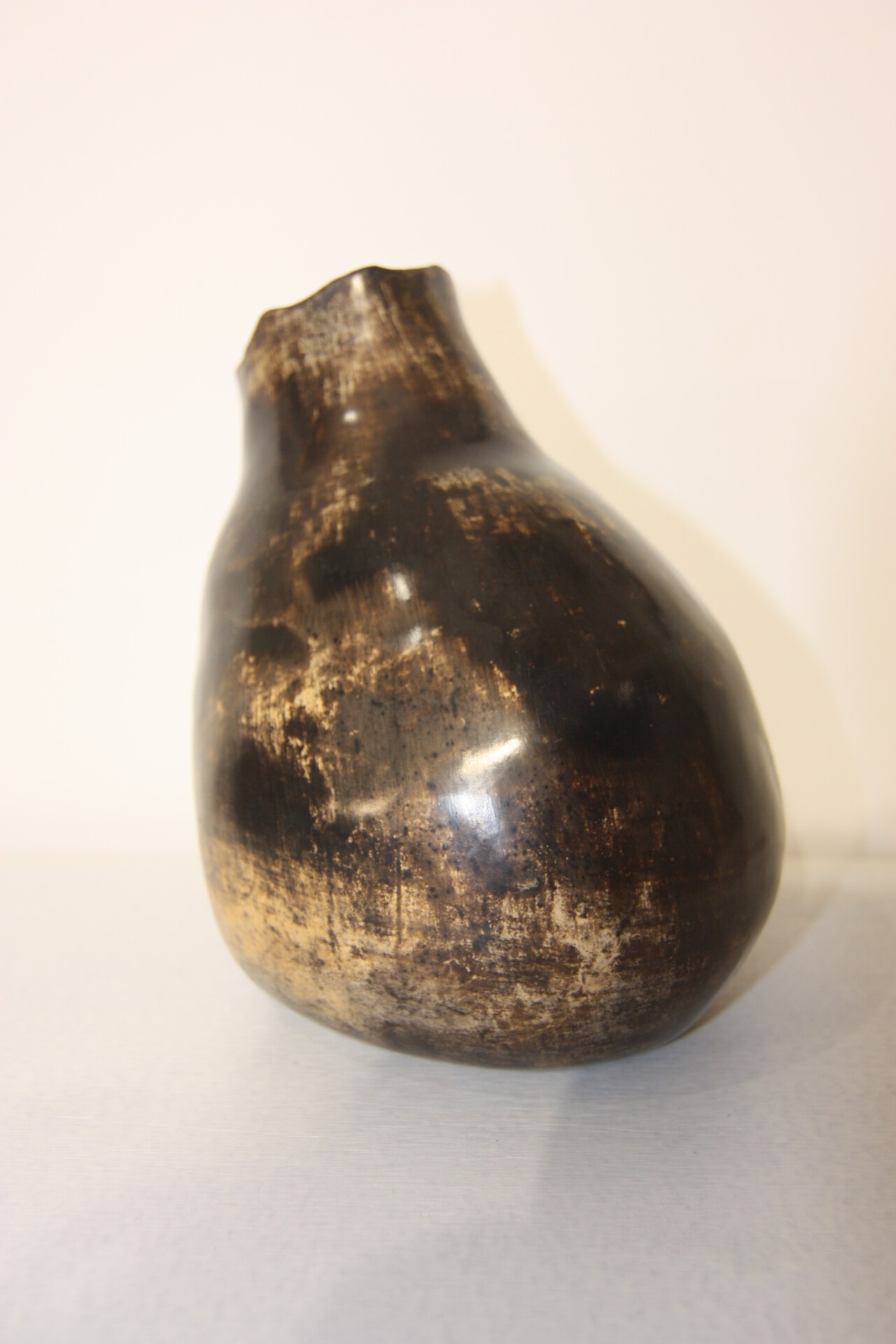 C’est ainsi qu’elle s’engage dans une formation en céramique, où elle découvre la terre sigillée. Cette rencontre est un choc, une émotion presque physique. La subtilité de cette matière, sa capacité à capter la lumière et à inviter à la contemplation, ouvre pour elle un nouveau chemin intérieur.Exploratrice de la matière, Nathalie récolte elle-même ses argiles dans la nature, dans une démarche respectueuse de l’environnement. Après un patient travail de décantation, elle ne conserve que les particules les plus fines, ces « laits d’argile » qu’elle applique délicatement sur ses pièces tournées ou modelées. Chaque forme est longuement polie, dans un geste lent, méditatif, presque rituel. Vient ensuite la cuisson, moment décisif où la flamme inscrit sur la surface une empreinte imprévisible. Chaque pièce naît ainsi du feu, unique, habitée de paysages intimes que chacun peut s’approprier. Comme un tableau silencieux, la terre sigillée raconte des histoires mêlant douceur, intensité et poésie minérale.