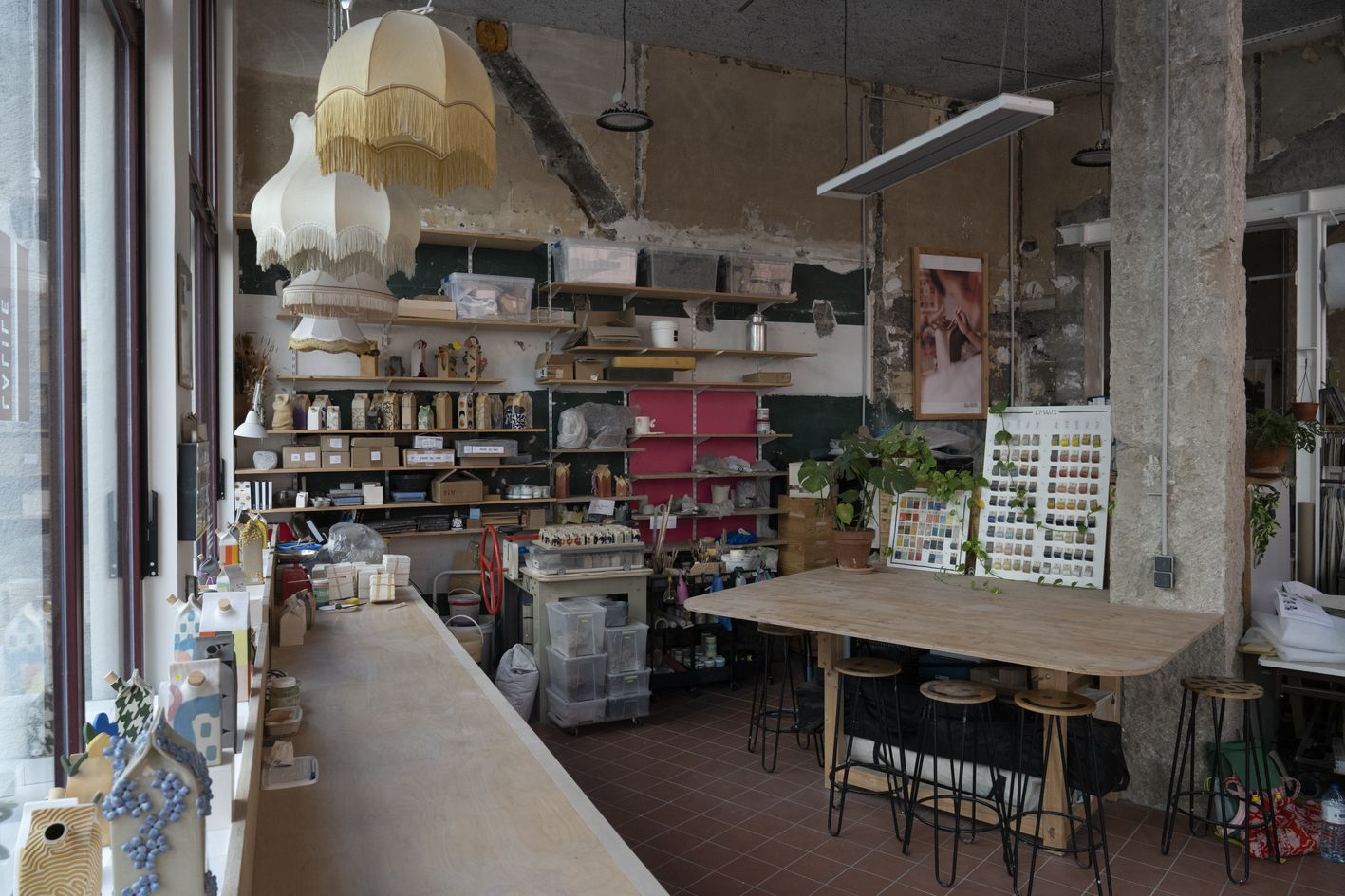 Le 142 cours Tolstoï à Villeurbanne est un lieu singulier qui a ouvert ses portes en juin 2023. Local de 140 m2, il a été pensé pour héberger plusieurs activités artisanales ou artistiques avec des espaces distincts mais ouverts les uns sur les autres.