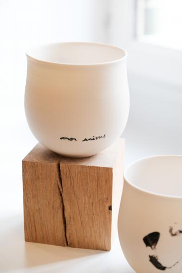 Vous pourrez y découvrir une collection d’art de la table en porcelaine où se mêle inspiration japonaise, tracé graphique et poésie des mots.