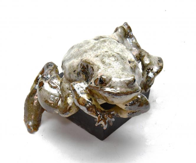 M'accordant une certaine liberté dans la représentation des animaux, je préfère avant tout me concentrer sur les effets de texture (par exemple les émaux restituent la peau grumeleuse du crapaud tandis que la fourrure des lièvres est évoquée par le biais d’empreintes dans le grès), sur les postures et le mouvement.