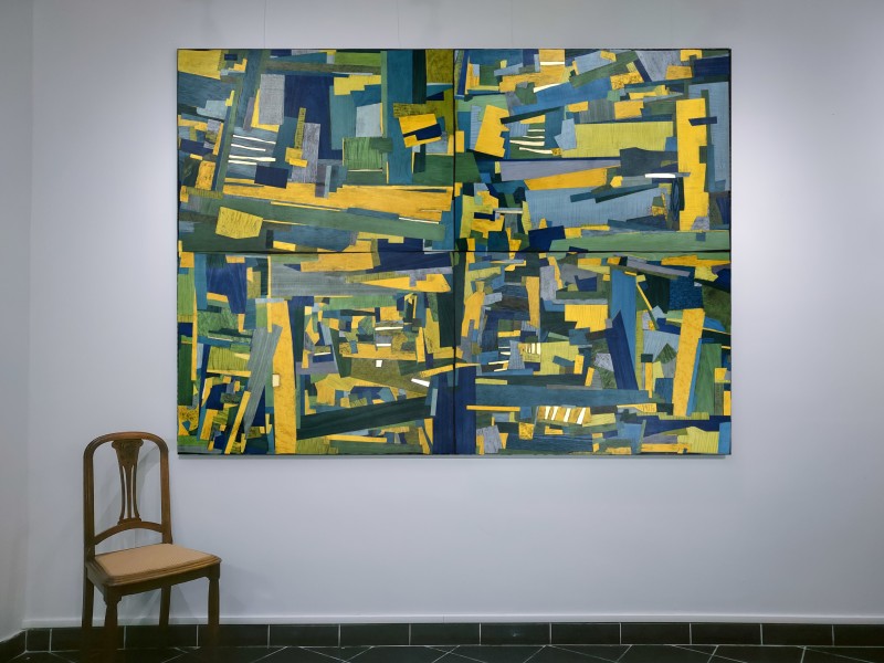 Création de tableaux en marqueterie de bois. Une marqueterie abstraite, joyeuse et contemporaine.